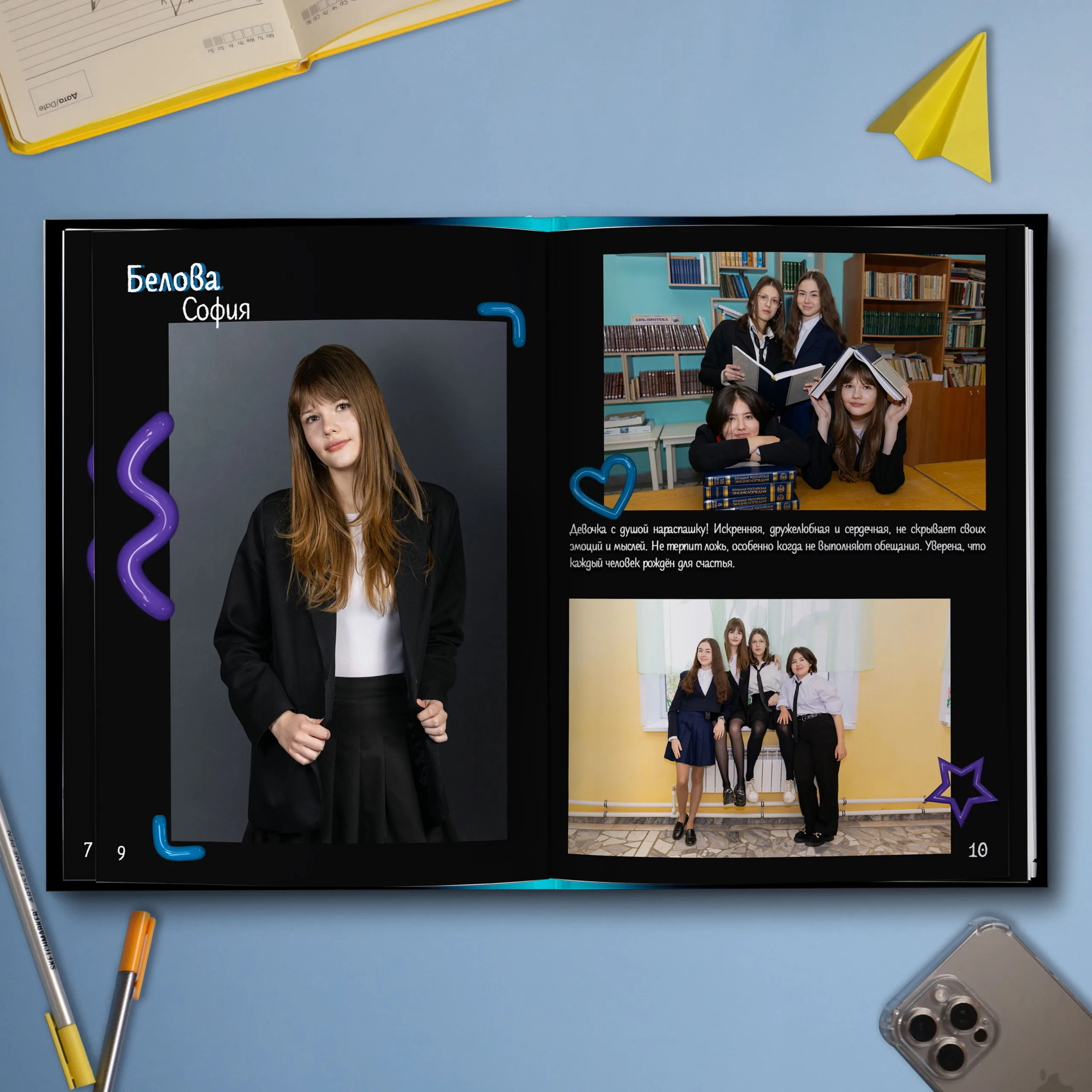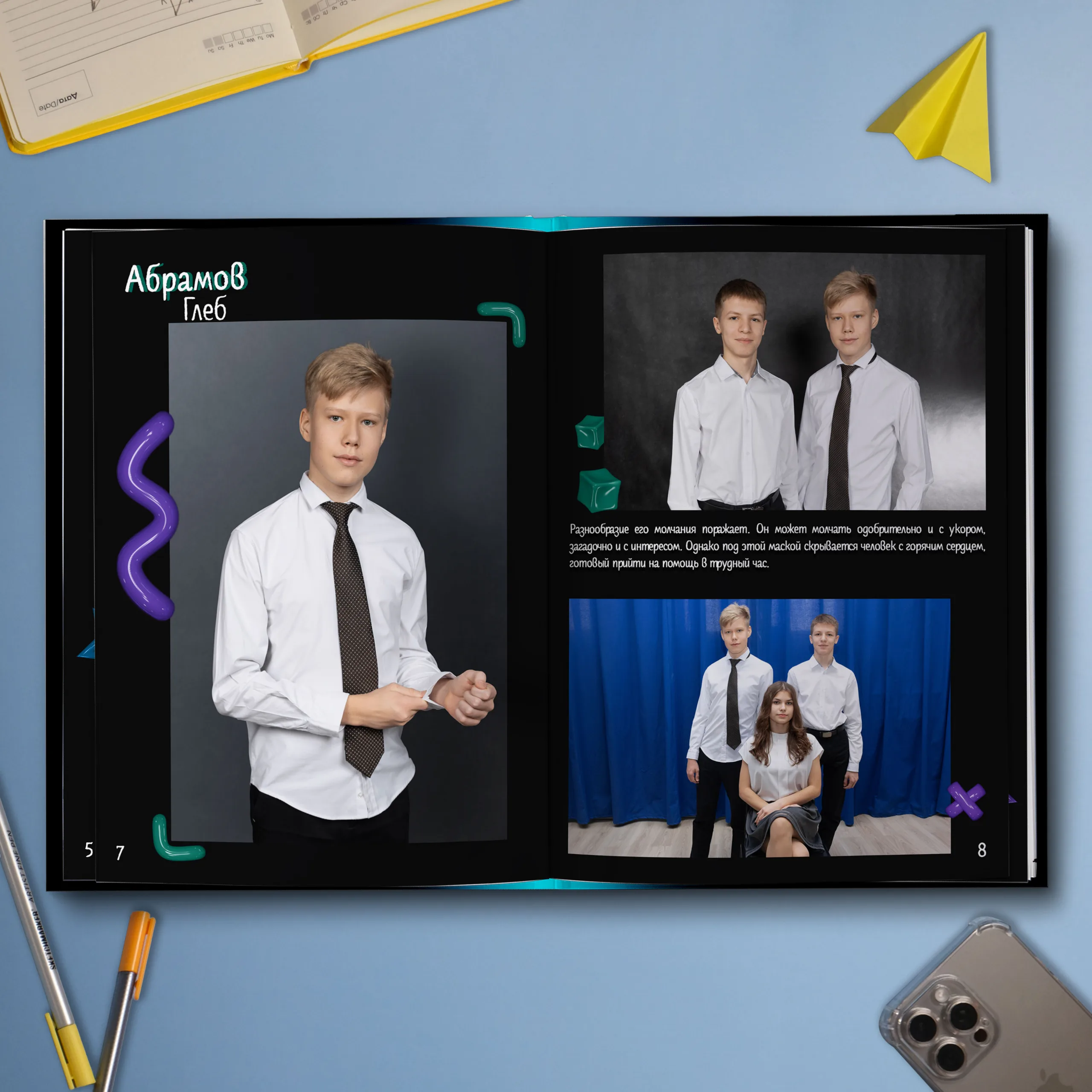 • Две личные страницы ученика с репортажными фото