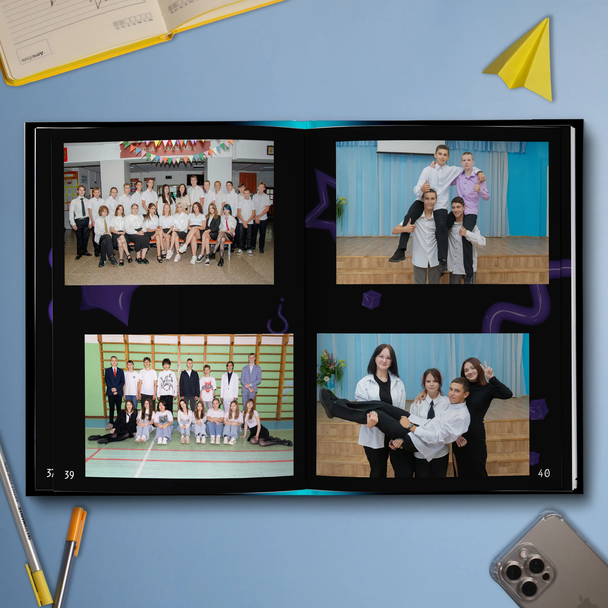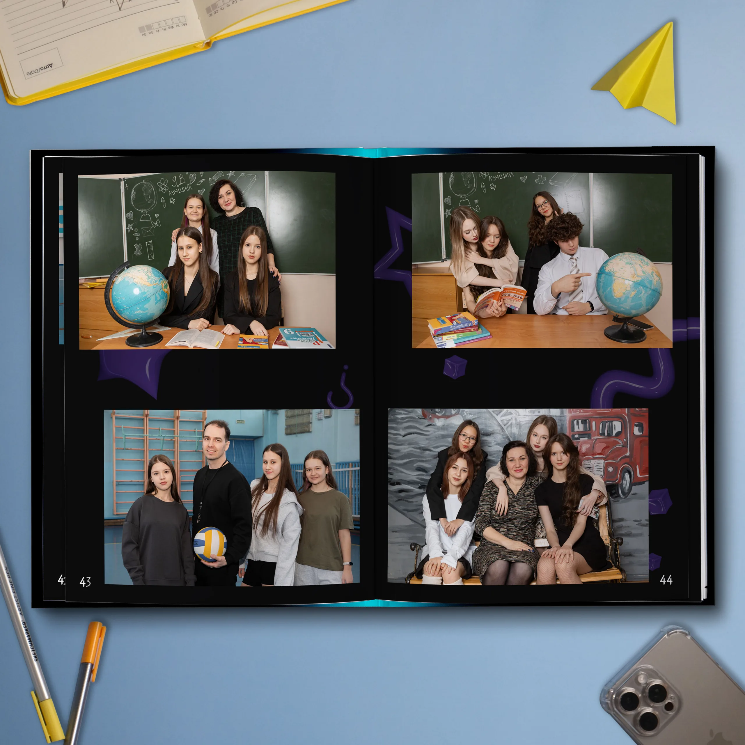 Последние 3 разворота — общие репортажные фотографии класса (12 шт.)